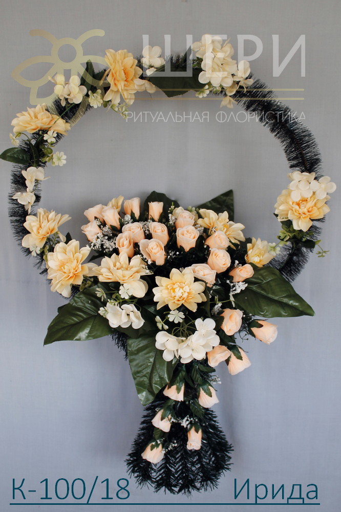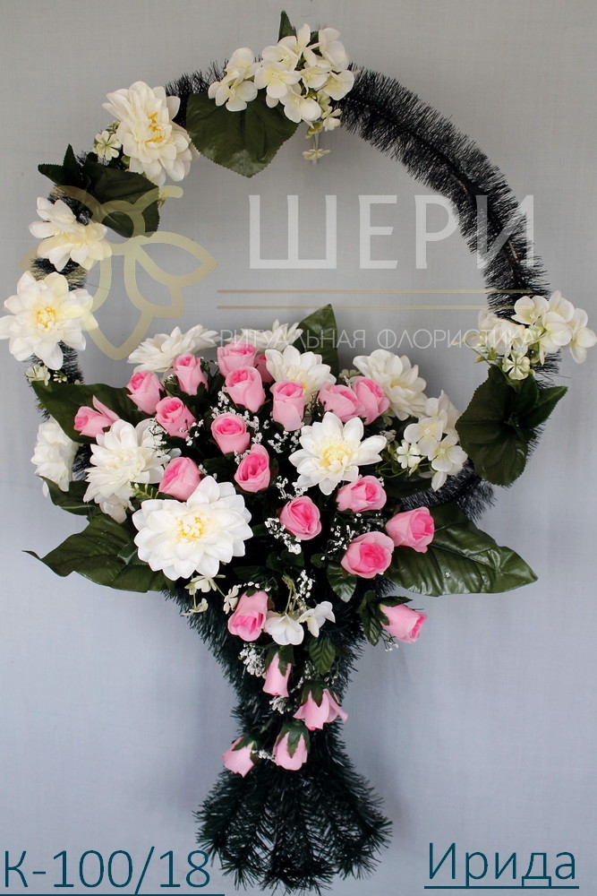 Корзина ритуальная К-100/18 Ирида из искусственных цветов на металлическом каркасе.